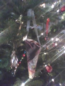 And because I had to be all Type-A about things, we’re skipping the stocking stuffers. Instead, we’ll be putting treats into Victorian-esque paper cones and hanging them from a seven-foot balsa tree. Each cone will be stamped with a guest’s name on it, so they can pick through the boughs, probably while balancing Melinda’s egg nog, to find their cone.