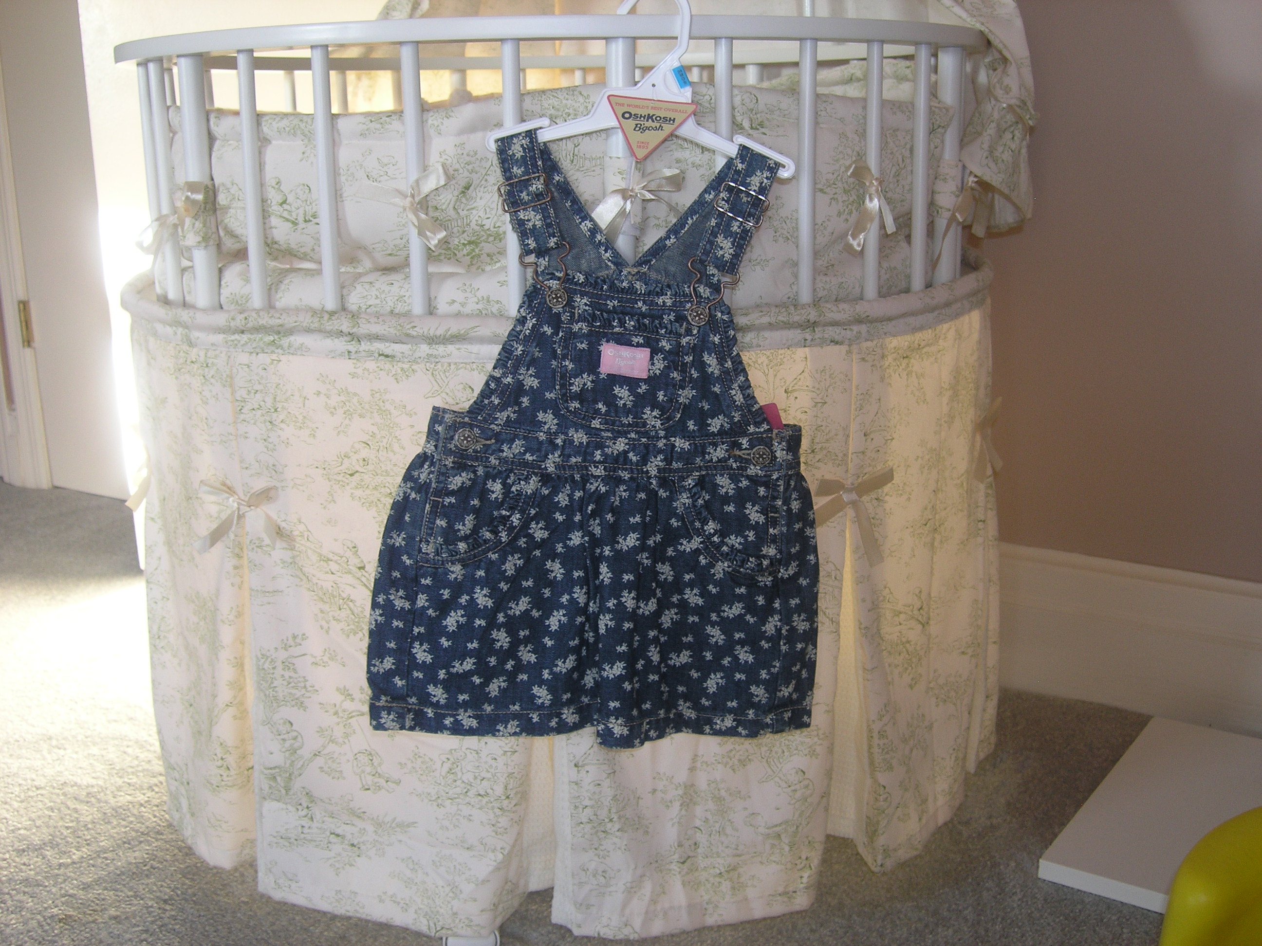Baby must have just finished a minor growth spurt. All of a sudden, it seems, she has a thicker layer of pudge on her feet, making her shoes more snug. And she has developed a cute little bay window, which makes her denims fly open in a very unladylike manner. So after buying her a couple of pairs of cute Italian shoes at Daffy’s on Broadway, I decided to to go the nearest mall and stock up on some new pants. I only intended to buy a couple of pairs. But once I walked into the OshKosh B’gosh, all my plans changed.