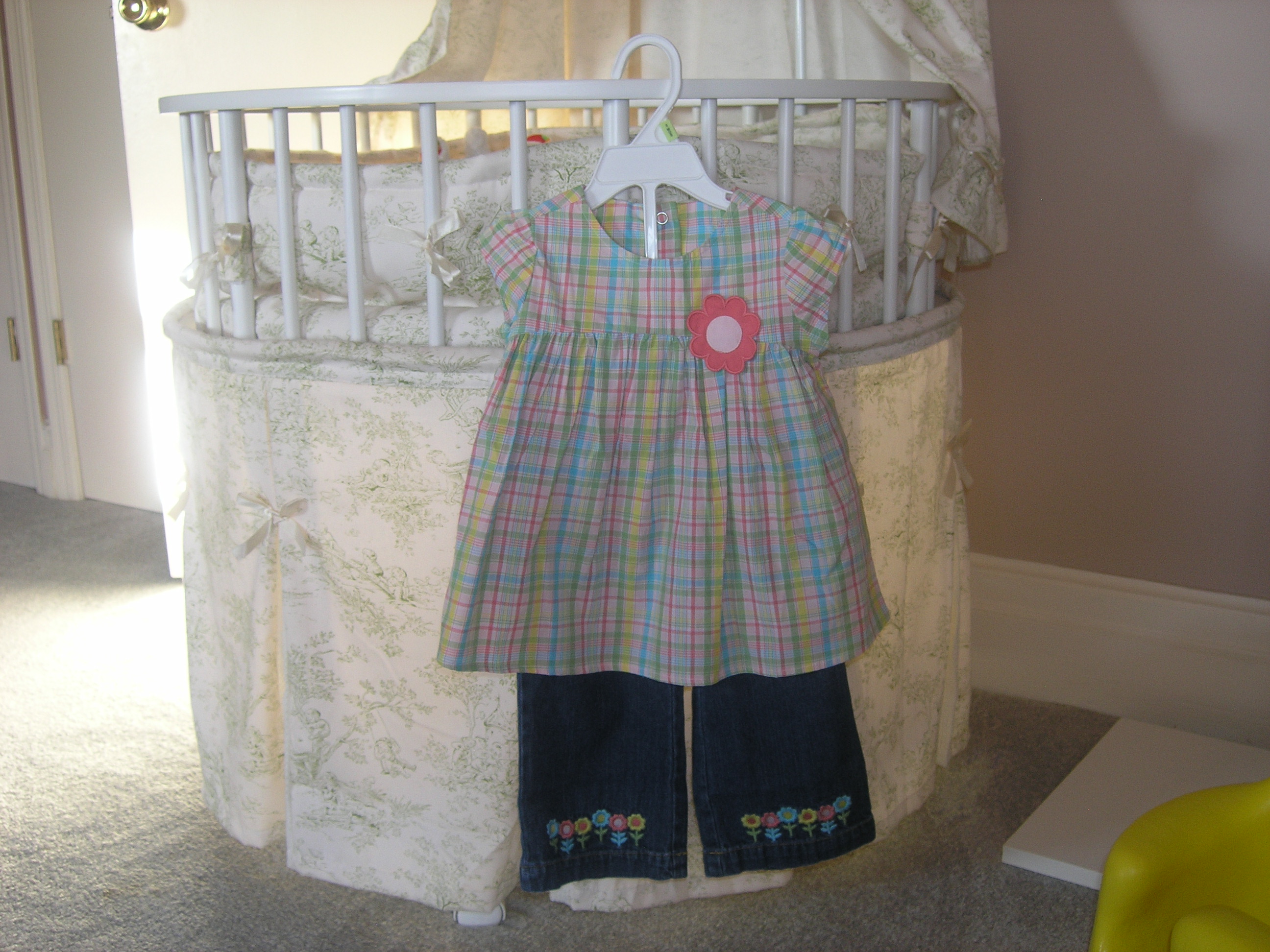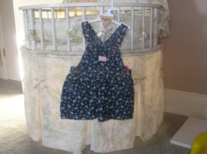 The tally from my buying frenzy came out to a little over $200, which is not a small amount. But I expect Saturday’s haul to make up the bulk of Baby’s casual clothes for the spring and summer (with carefully chosen fill-in pieces from area tag sales and a consignment store called Milk Money). Actually, the bulk of Baby’s wardrobe thus far has come from the discount and second-had channel. To this day, I’ve only bought a handful of items from full-priced retail stores, most of which came from a European-esque boutique in the Ironbound. (It’s where I got Baby’s luscious 100% silk christening gown.) So yeah, I might be justifying my recent extravagance, but I think we deserve a brief deviation from our normal routine of thrift and restraint.