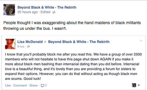 In the essay, everything seemed to be tracking along with other experiences that I, and my other friends who have dated out, have had, until somehow her dating psychology swerved out of the confidence lane and into the oncoming traffic of a racist American society. I know it’s a personal essay, but the author never balanced the article by pointing to the fact that the Psychology Today article was debunked and wiped from the magazine’s Web site because it lacked any scientific grounding — and was cruel and offensive. Colleagues who rushed to defend the author spewed even more vile and racist assertions, like the need to look into the so-called fact that Blacks are more promiscuous, and Black males are more prone to rape white women! The OKCupid study was also effectively rebutted in several essays. And who really cares what a singer says about having a “David Duke cock” in an bizarre interview, anyway?